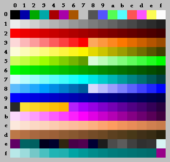 following color chart